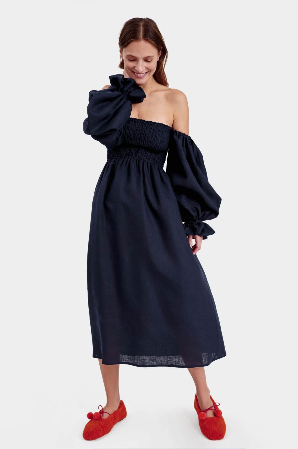 It's easy to see why the Atlanta dress is everyones Summertime favourite and the Sleeper best-seller. This dress works for any occasion, you can wear the sleeves on your shoulders or draw them down. It features s a beautiful smocked bust and waist, and is made from 100% linen. The matching ribbon pictured comes with the dress too!