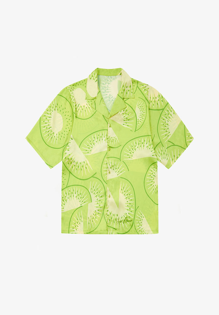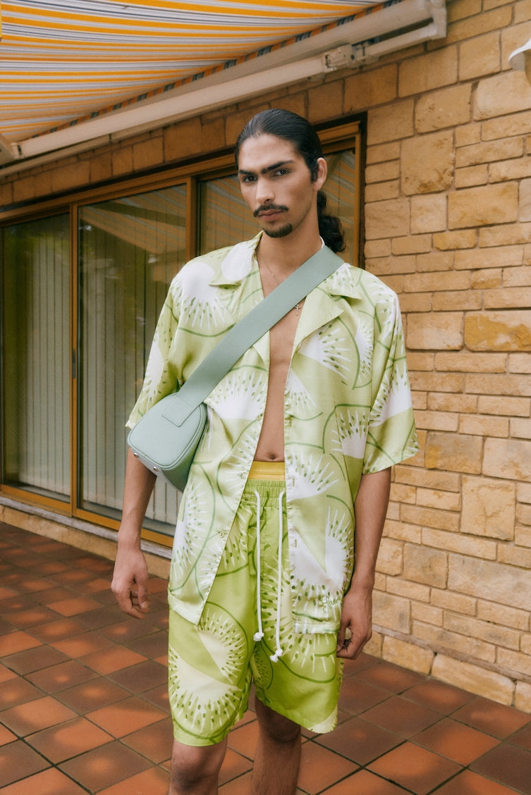 Laid-back and loose, the Falling Kiwis Shirt is a short-sleeved number with a playful kiwis print designed with the perfect combination of greens. It’s crafted from a silky polyester that allows for the perfect hang and features an open spread collar for a sunny look.