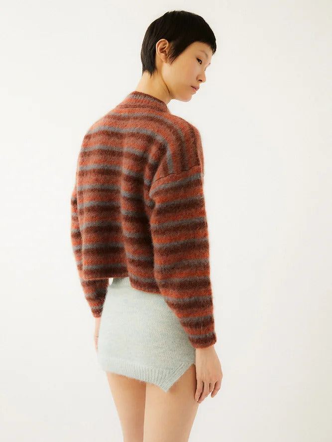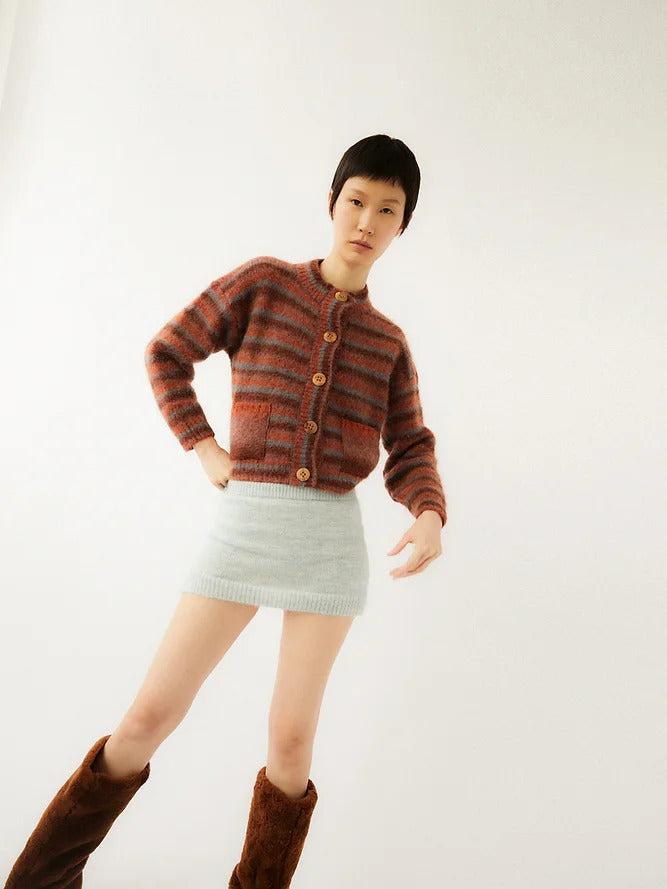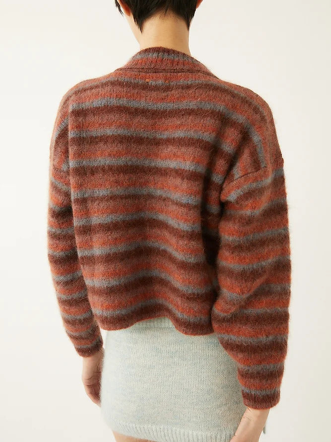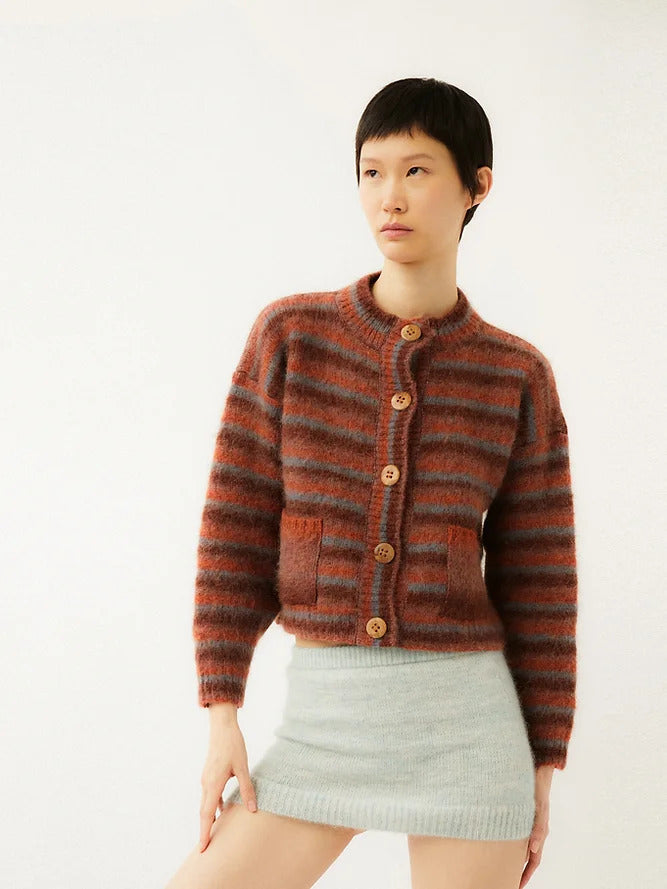 Knitted wool alpaca blend stripe cardigan. Large wooden buttons. Your perfect go to cardigan this Winter.
