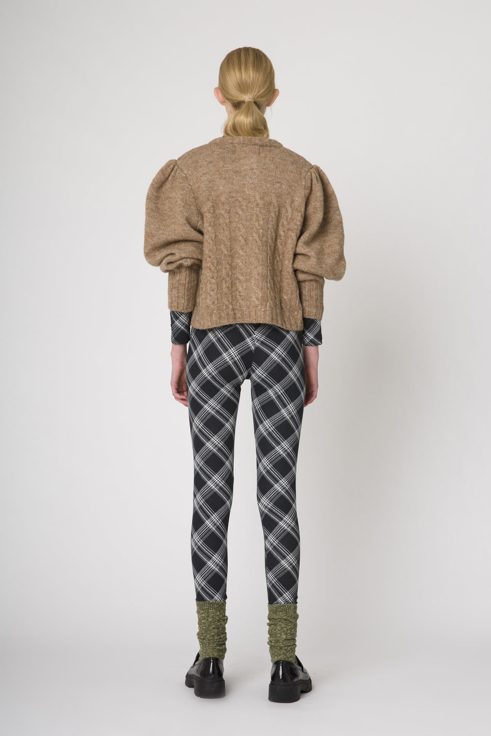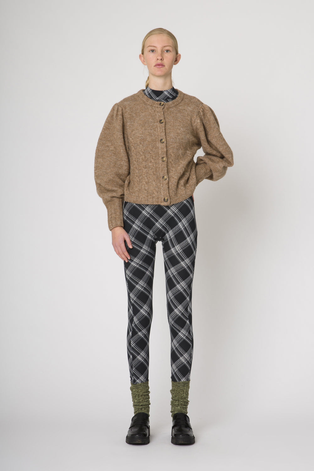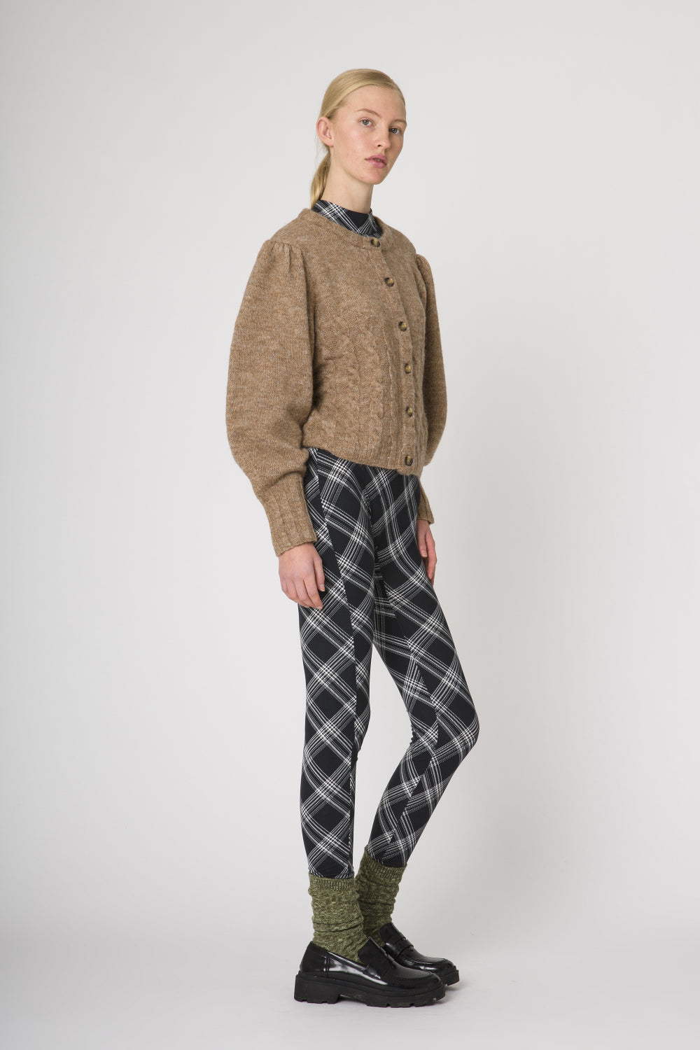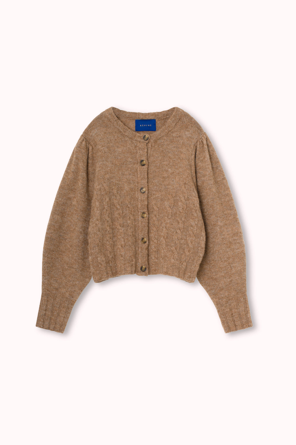 The knitted Gwyneth cardigan features a button front and a gathered sleeve.