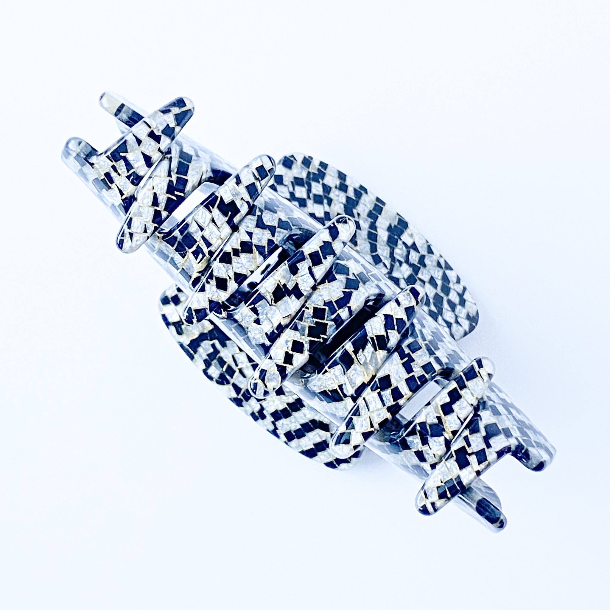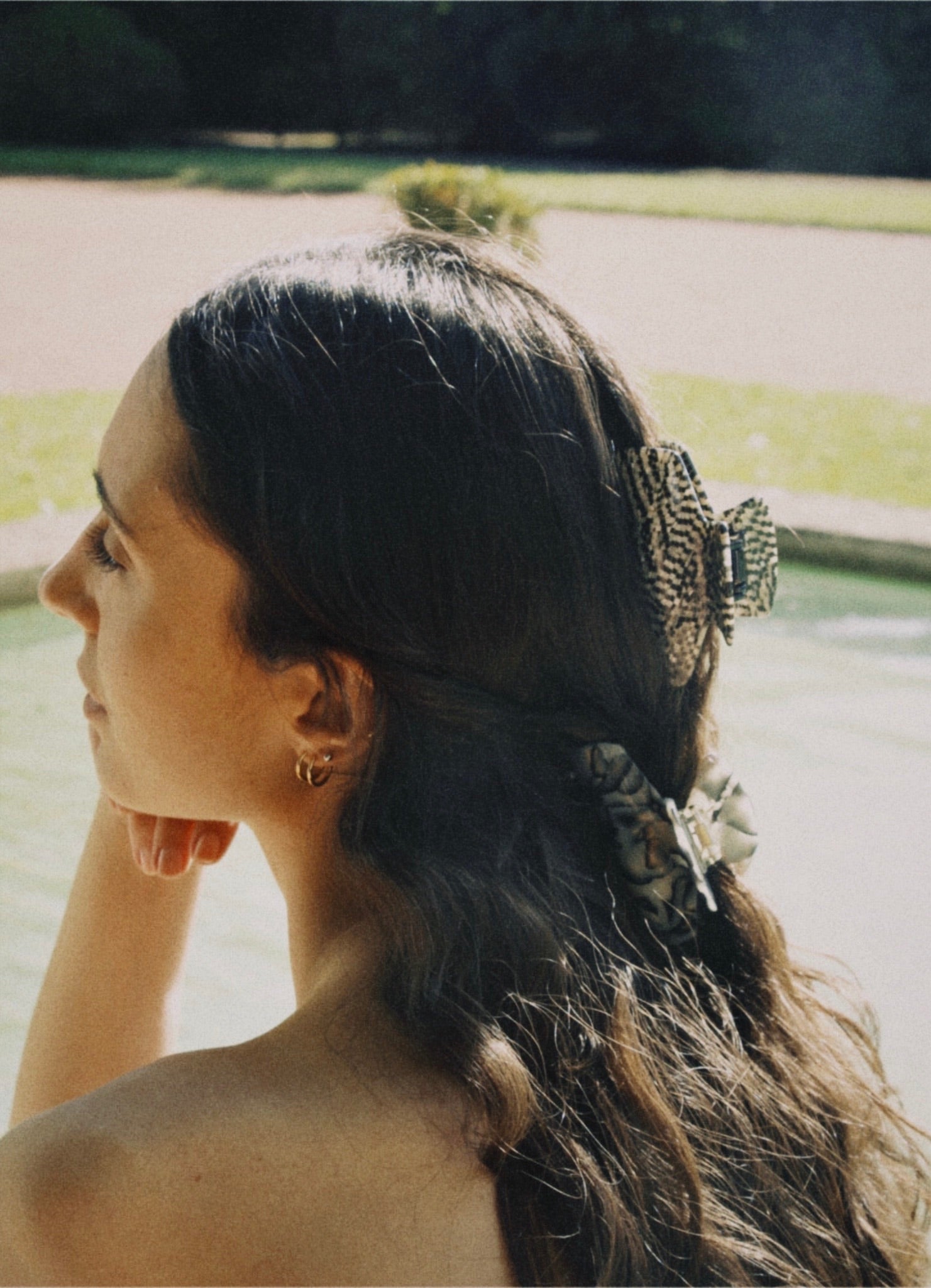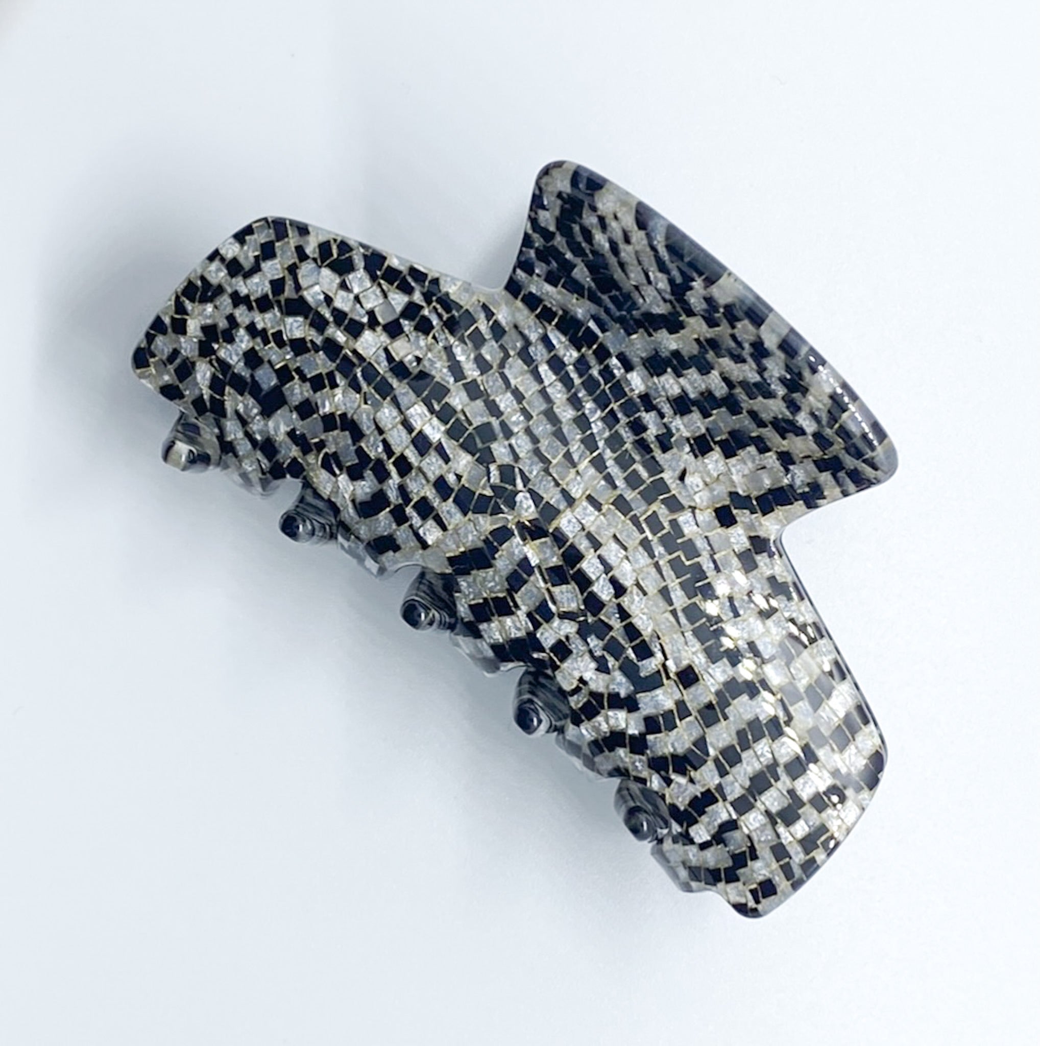 JUNO hair accessories are made from high quality and eco-friendly cellulose acetate materials. Due to the hand-poured production method, there will be a slight variation in the pattern of each clip, and each one will be unique in appearance.