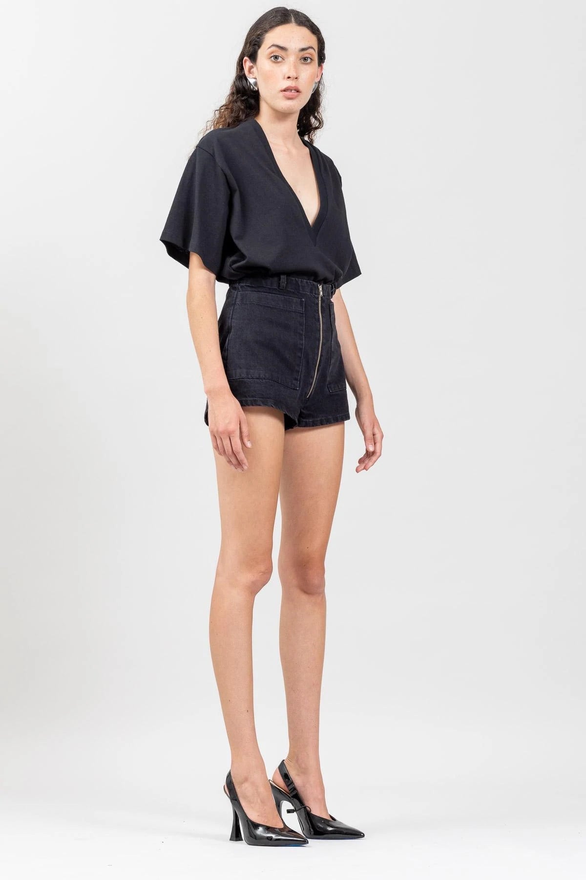 Deep plunging V-Neck tee. The Mars t-shirt is a loose fit boxy shape with short sleeves. Looks great tucked into your jeans, a tee that feels a bit more chic and dressed up!