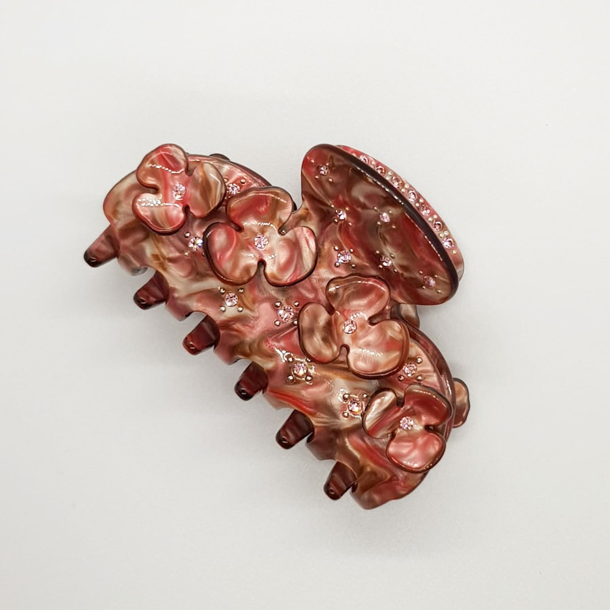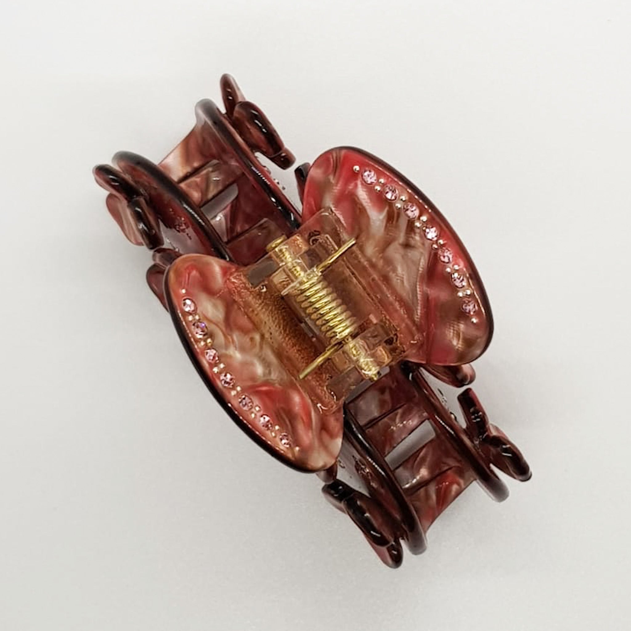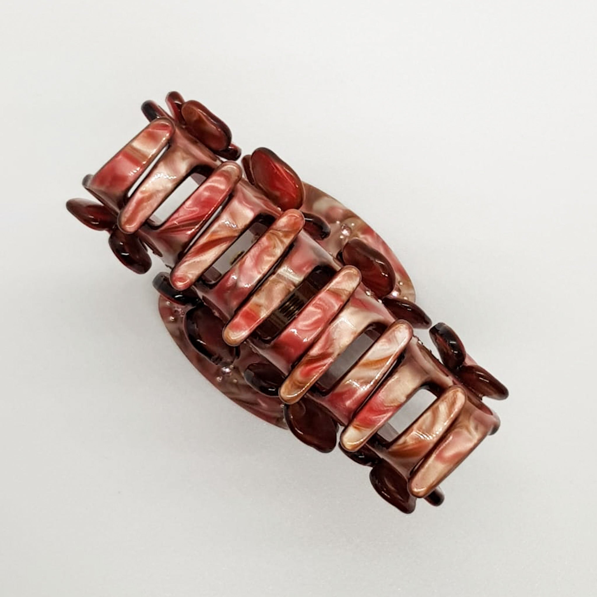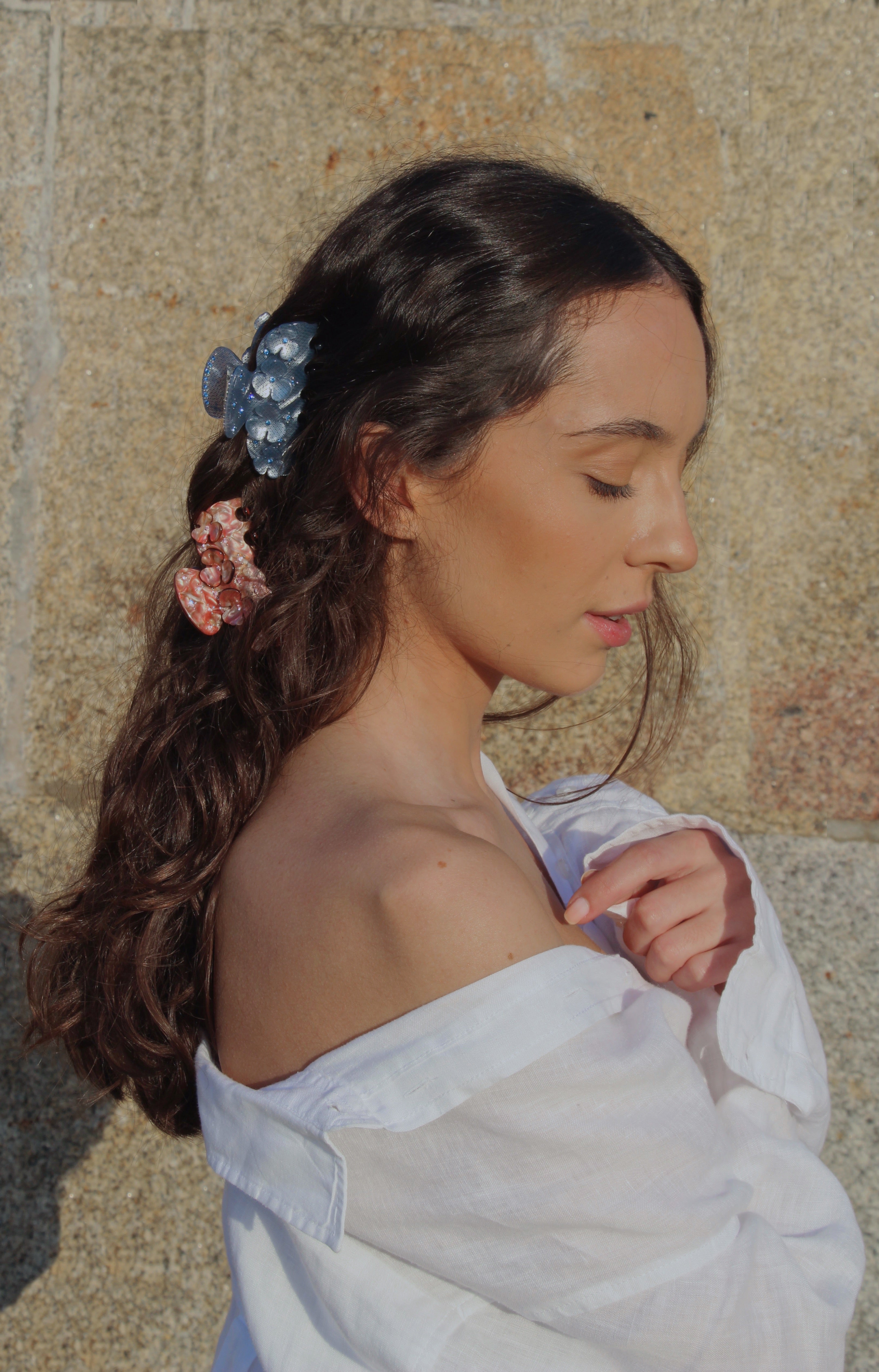 JUNO hair accessories are made from high quality and eco-friendly cellulose acetate materials. Due to the hand-poured production method, there will be a slight variation in the pattern of each clip, and each one will be unique in appearance.