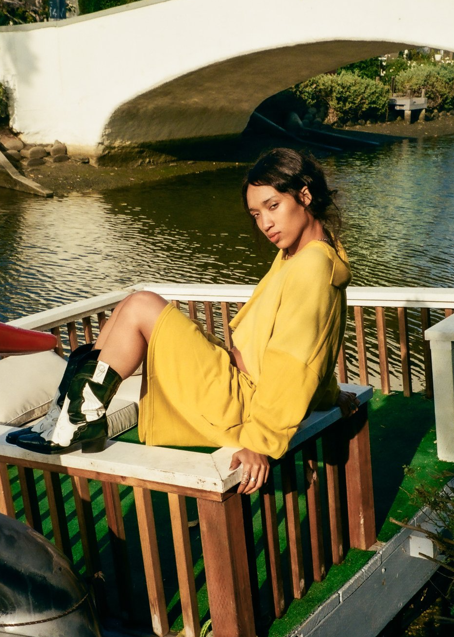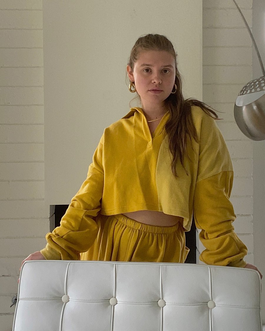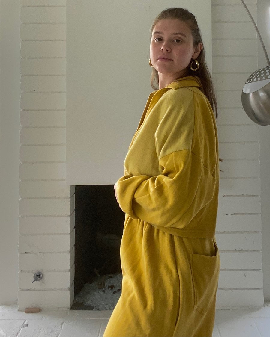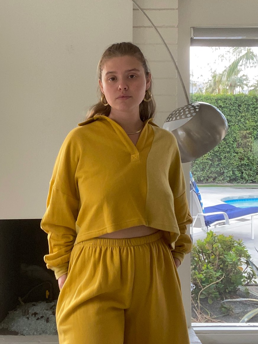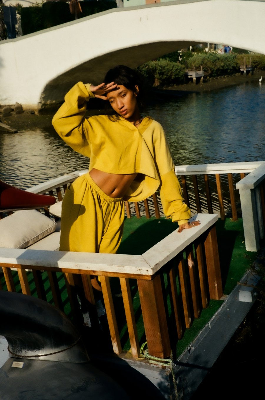 Made from dead-stock french terry fabric. The Ryanne top is an oh so cozy patchwork henley crop sweatshirt in a slouchy fit. We love these tonal yellow shades.