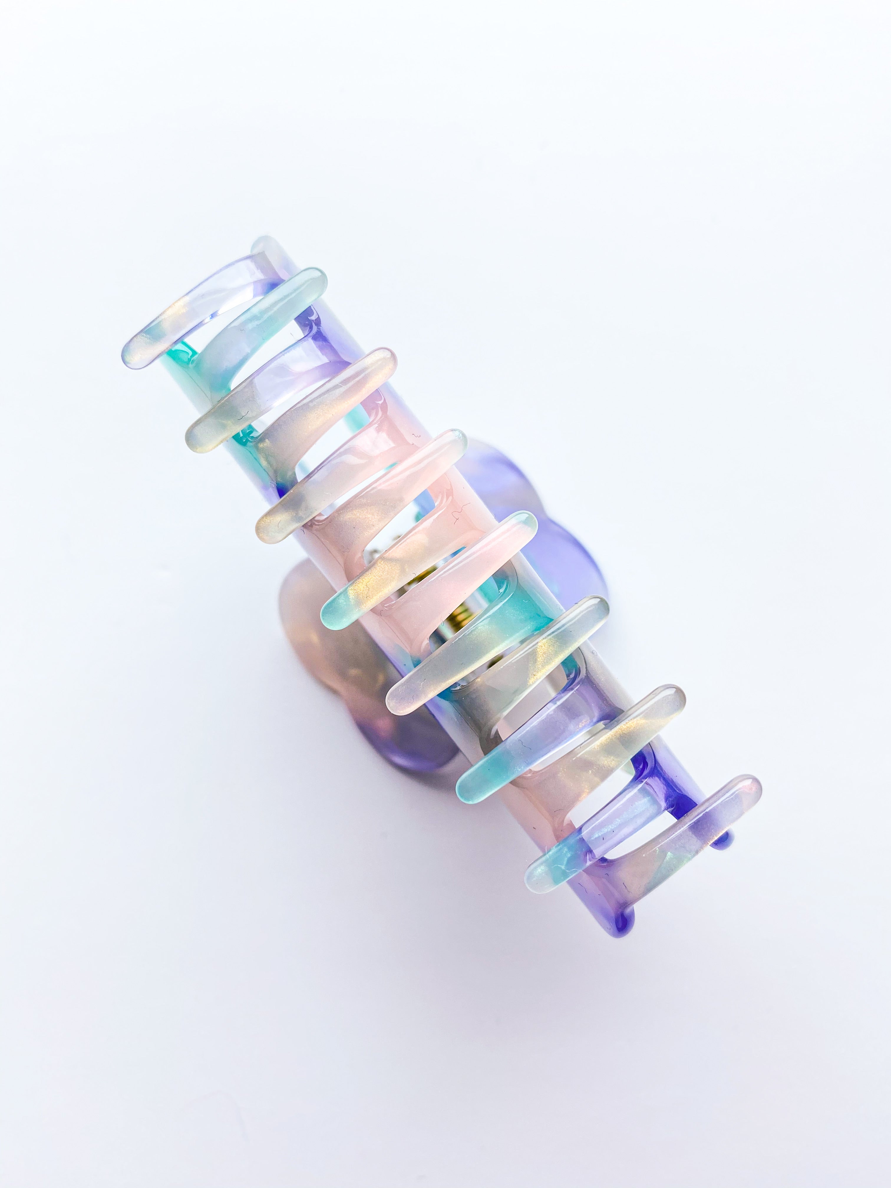 JUNO hair accessories are made from high quality and eco-friendly cellulose acetate materials. Due to the hand-poured production method, there will be a slight variation in the pattern of each clip, and each one will be unique in appearance.