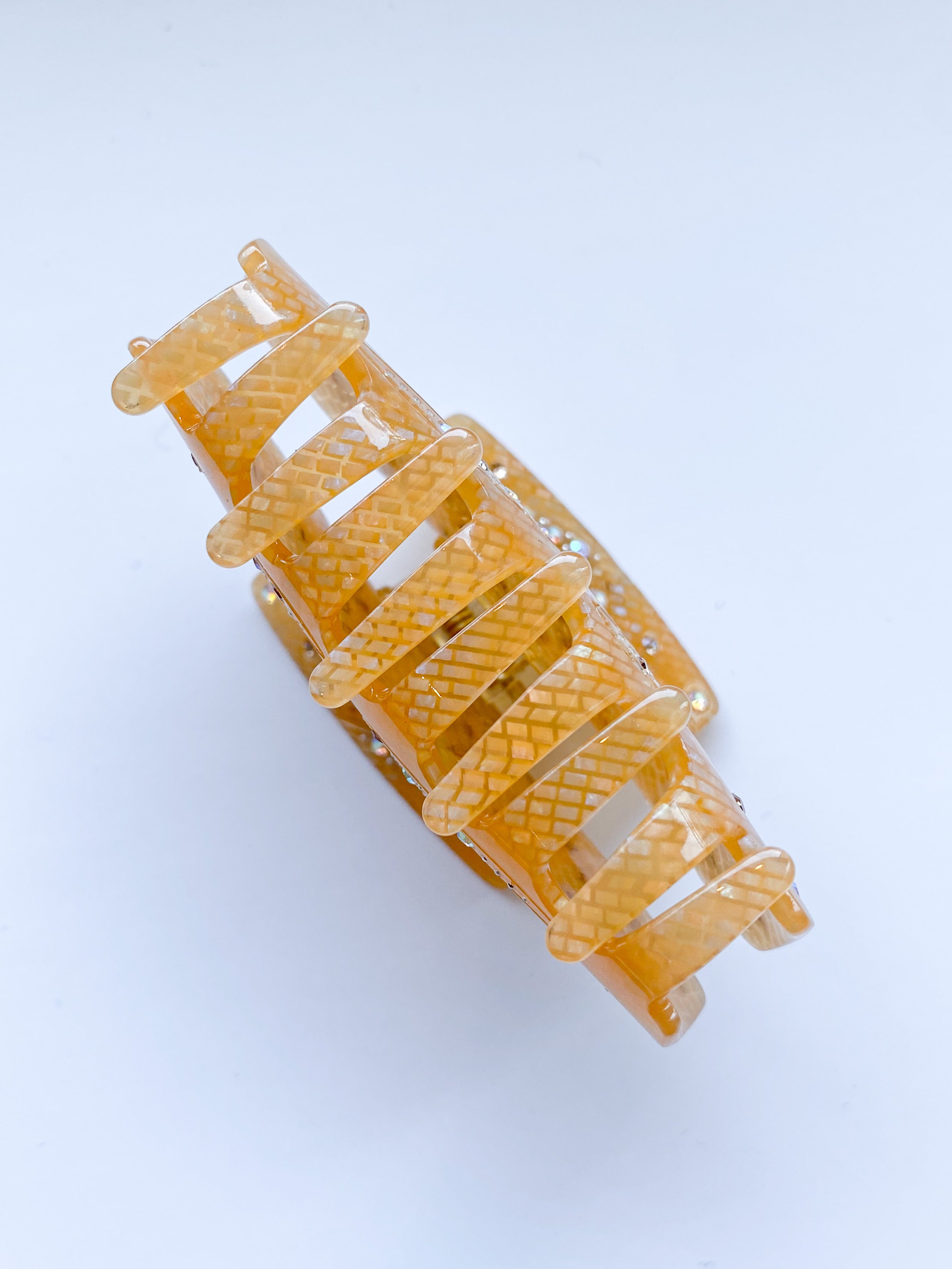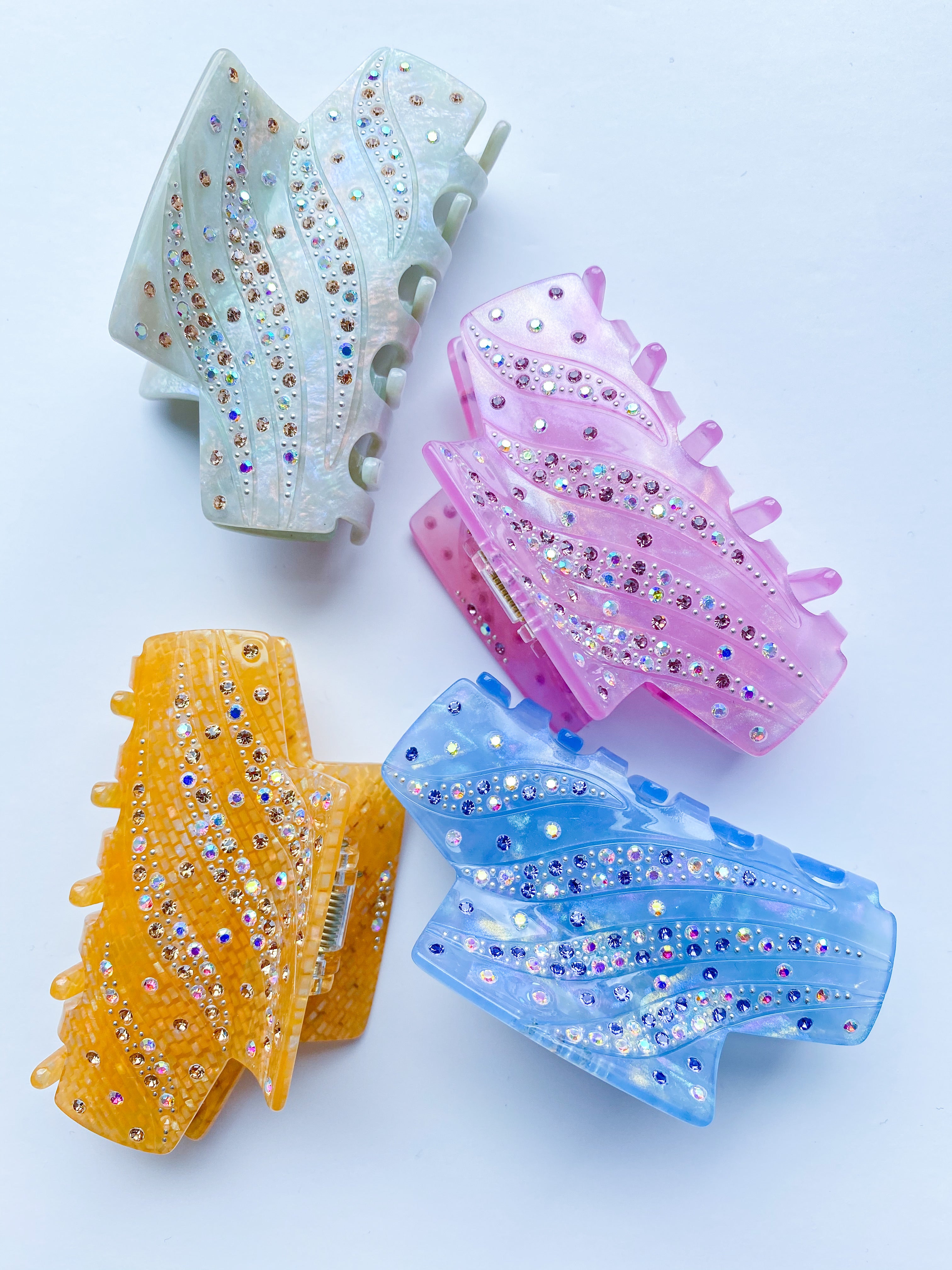 JUNO hair accessories are made from high quality and eco-friendly cellulose acetate materials. Due to the hand-poured production method, there will be a slight variation in the pattern of each clip, and each one will be unique in appearance.