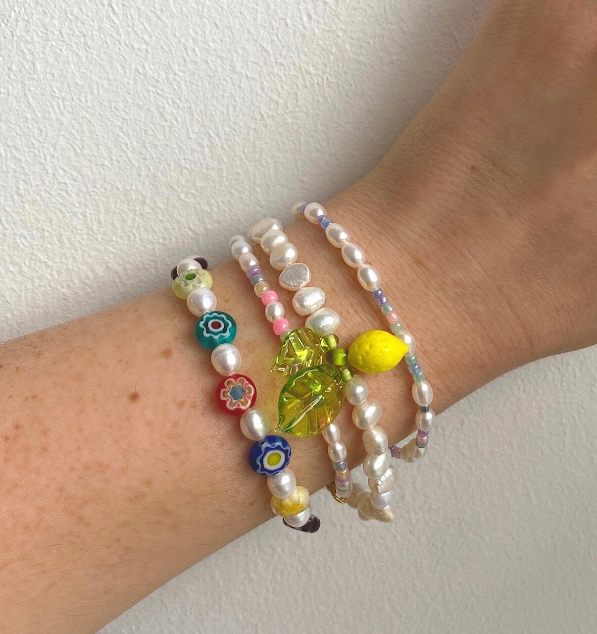 This Sweet Treat bracelet is the perfect piece of arm candy. With its blue pastel colour palette, it’s perfect for layering with lots of other bracelets on hazy summer days.