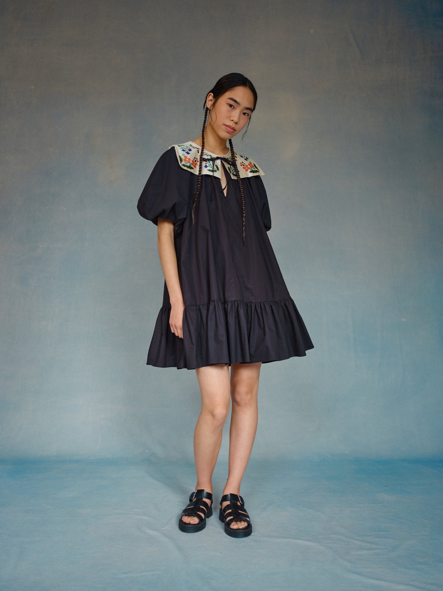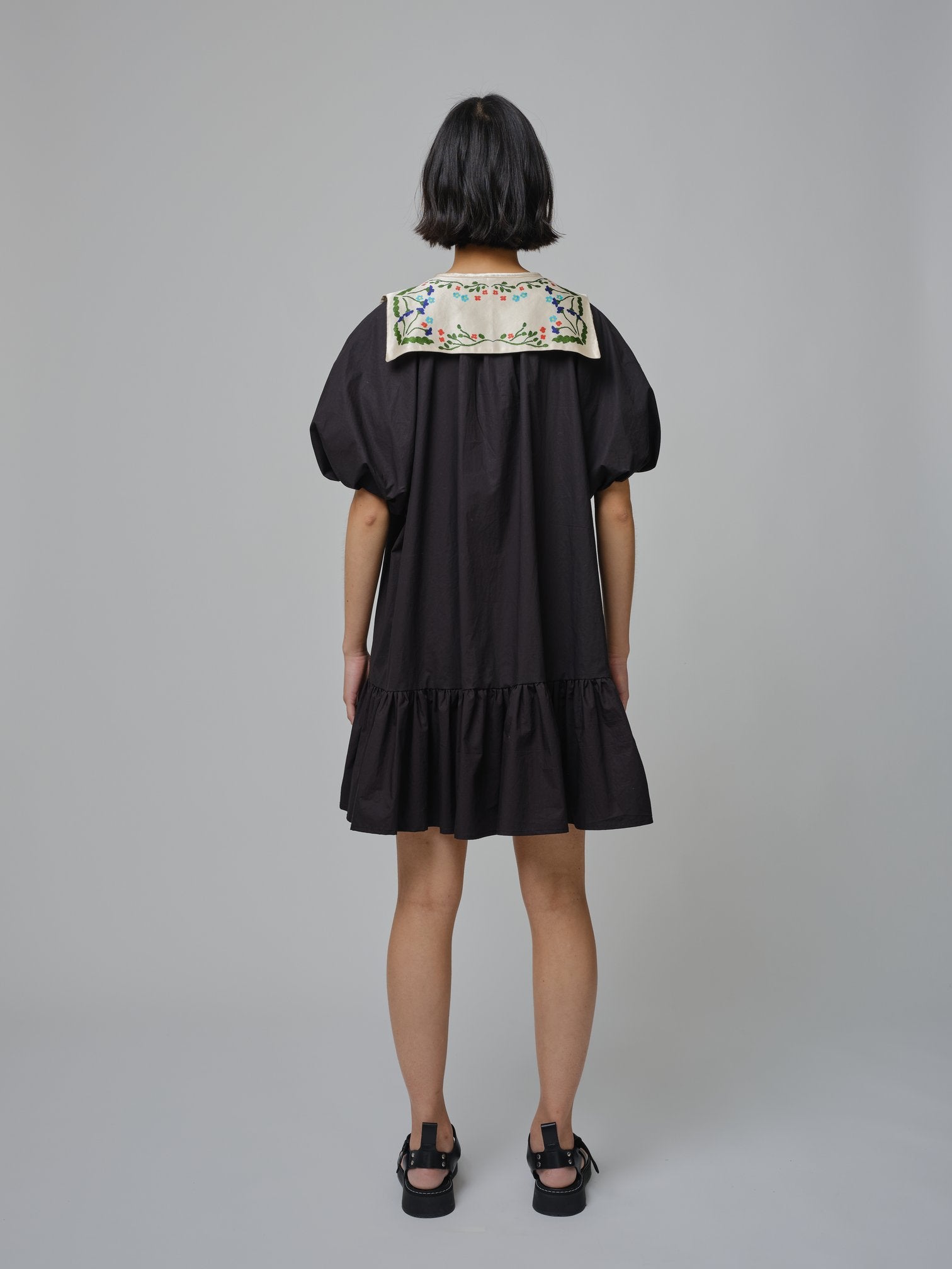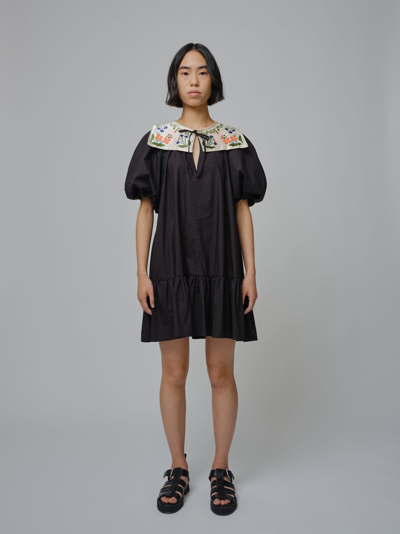 This silk collar is one of those special pieces you will treasure in your wardrobe forever. Made in delicate off-white colour silk; the floral pattern is hand drawn by Naya Rea and screen printed. Fasten with silk ties on the front; it's a perfect pairing with any dress, top or knitwear item. Pictured with the Naya Rea Calina Dress which you can view here.