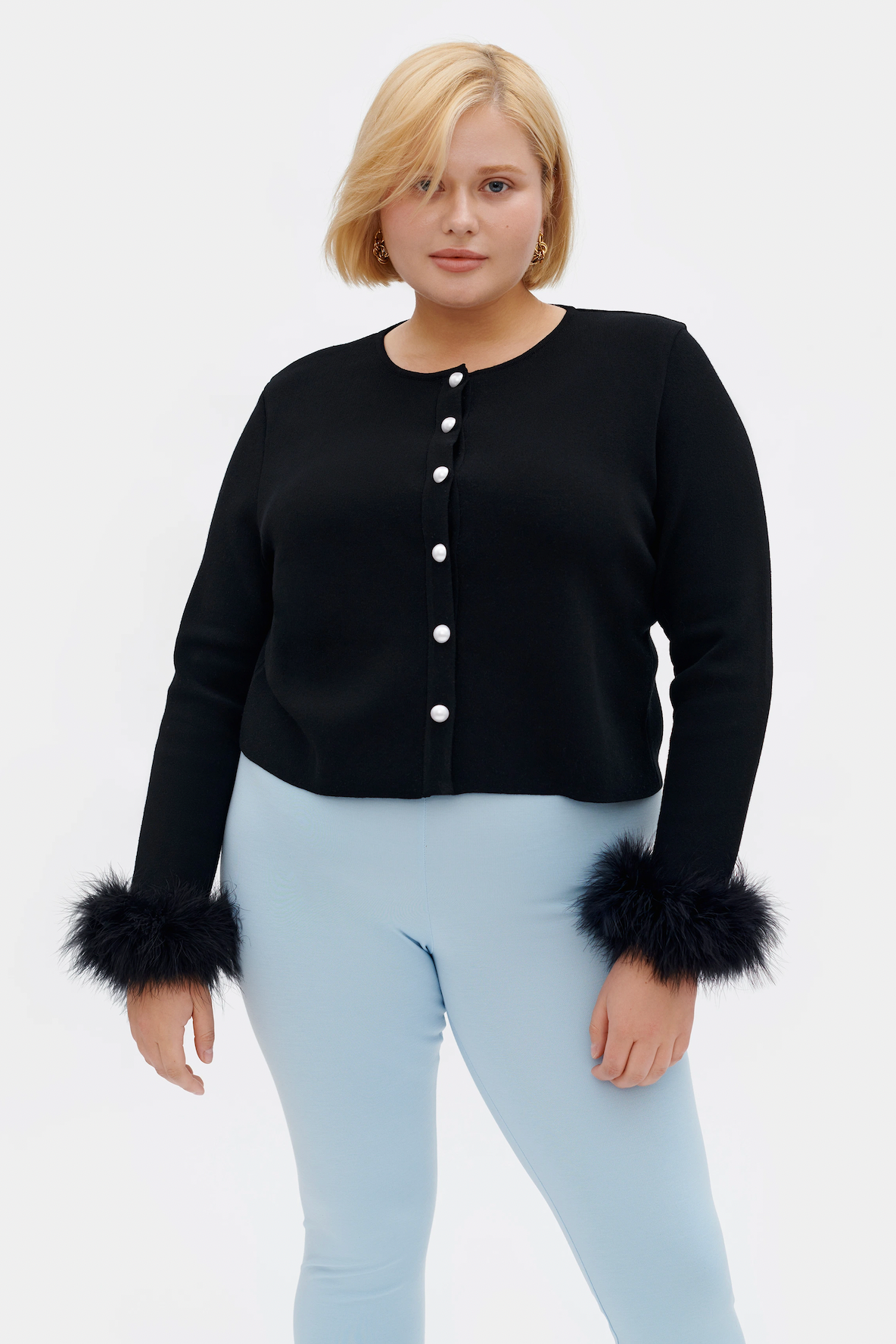 SLEEPER Knit Cardigan with Detachable Feathers in Black