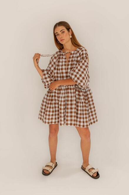 WILD HORSES Tilly Mini Dress in Chocolate Gingham